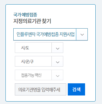 독감예방접종이 가능한 병원은 아래 예방접종 도우미 누리집을 통해 확인 가능합니다.